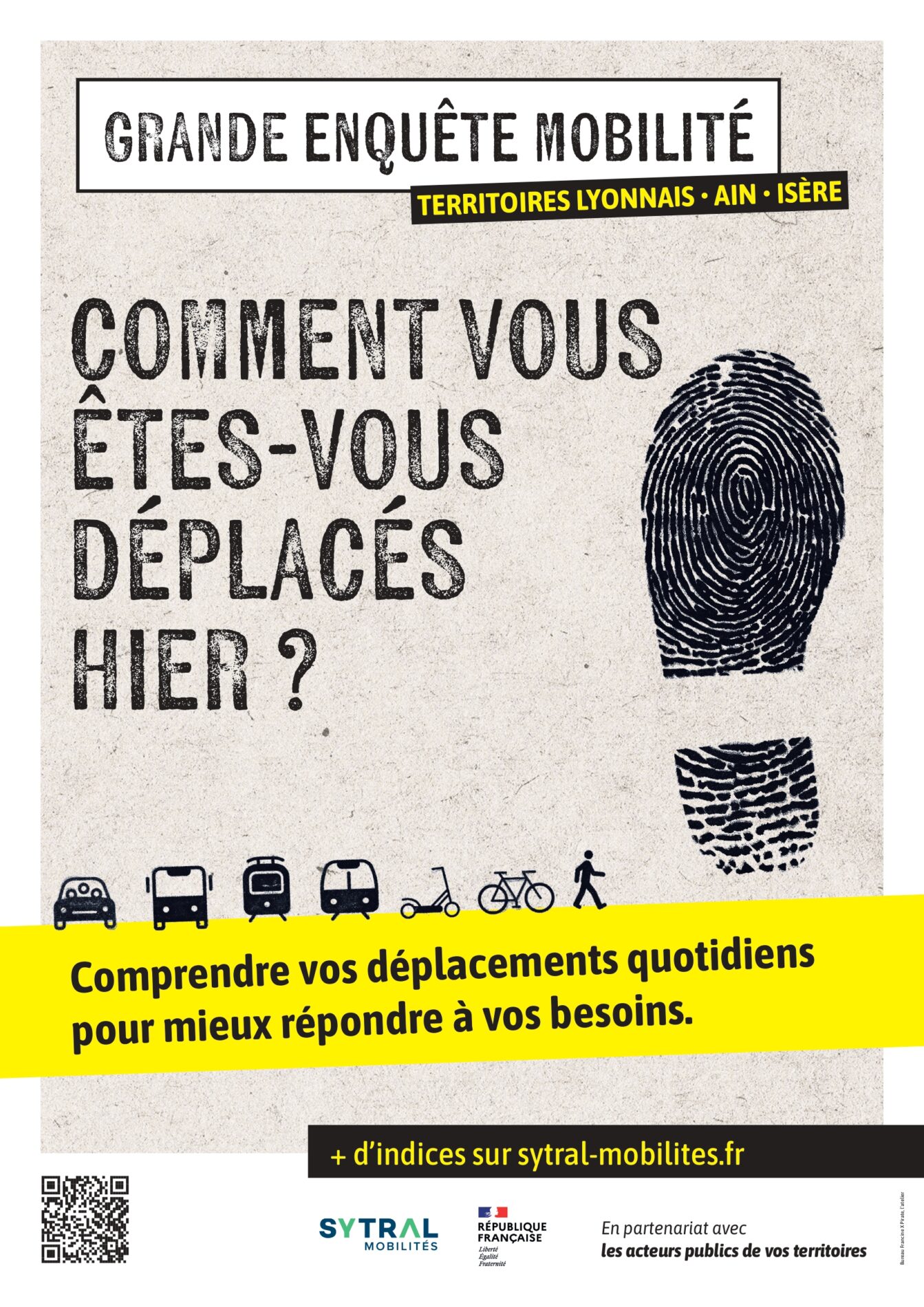 SYTRAL Mobilités lance une grande enquête sur les déplacements quotidiens des habitants de 564 communes des territoires lyonnais, de l’Ain et de l’Isère. L’objectif est de mieux connaître les trajets quotidiens pour améliorer l’offre de transport et faciliter les déplacements.